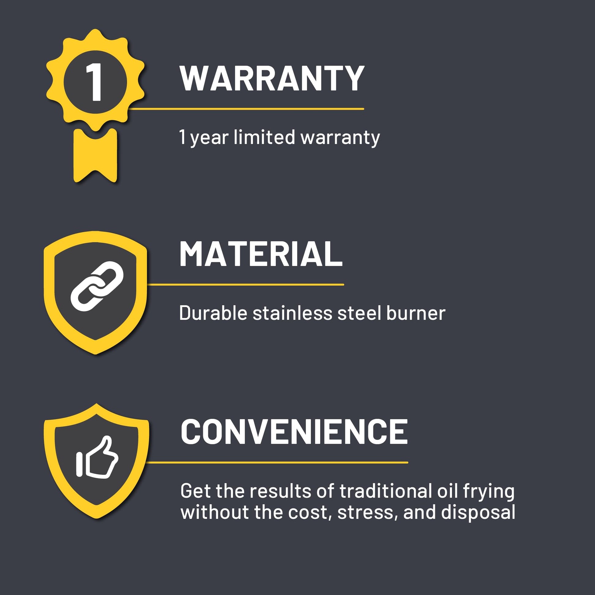 - SAFER: No hot oil means safer frying, less money spent and no stress about disposal