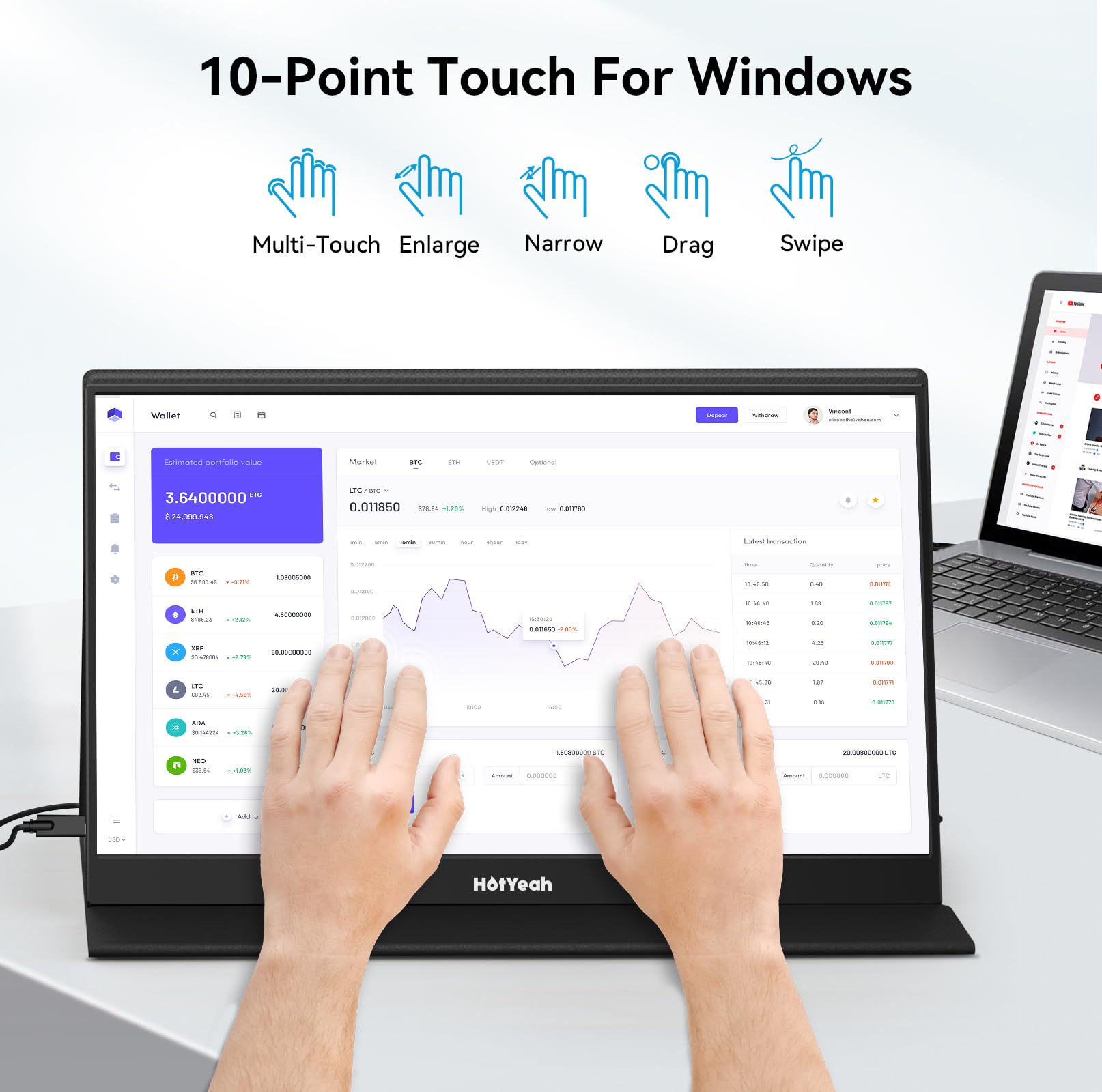 - Lightweight Travel Monitor - 1.38lbs weight, 0.23-inch frame. Slim, lightweight, and travel-friendly becomes the synonym for HotYeah portable monitor. It provides an extra screen and organized workshop during business trips and offers maximum entertainment pleasure with HDR tech when traveling. HotYeah computer monitor comes with anything you need for connection, and we always stand by our product and offer 1-year after-sale service and 24/7 online support.
