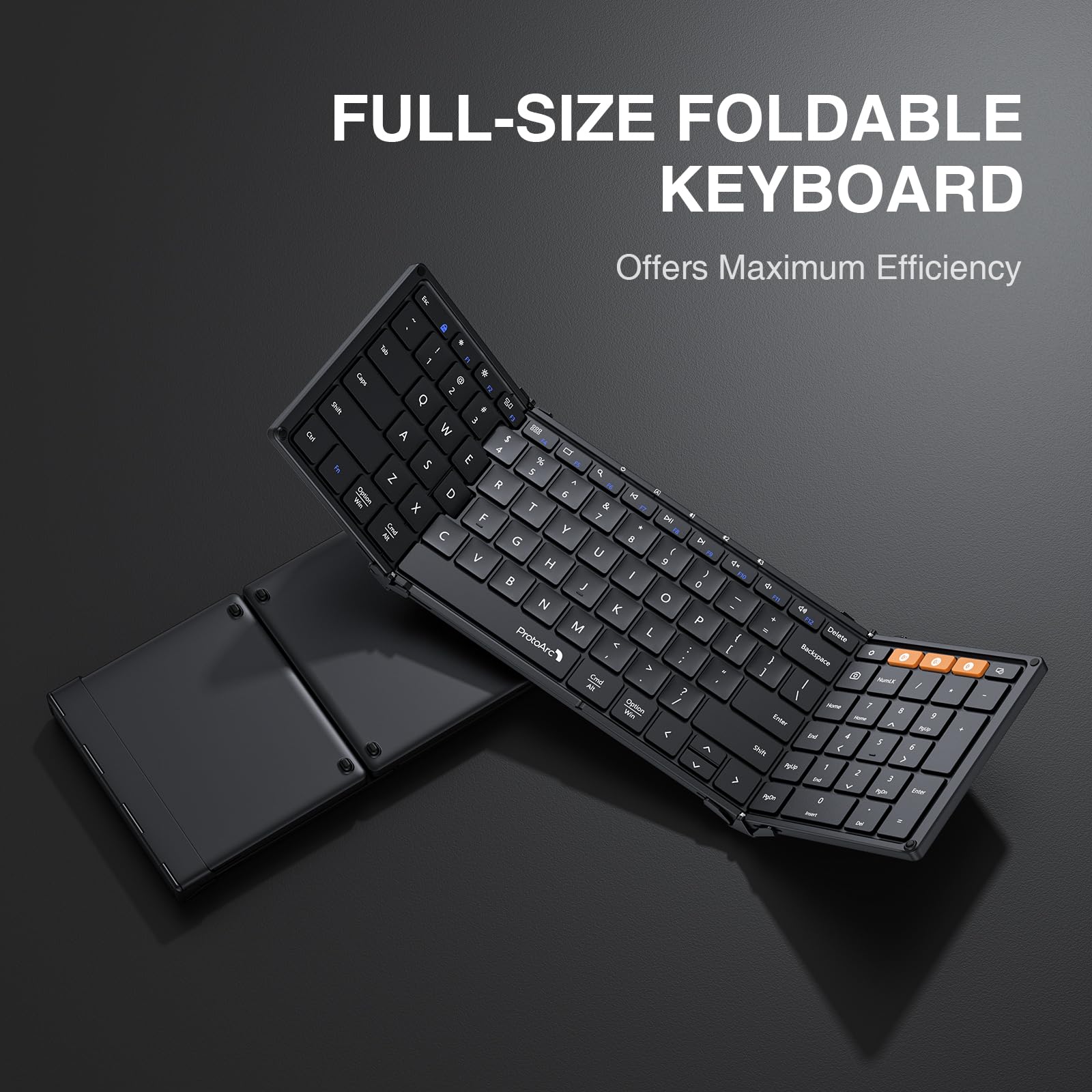ProtoArc Foldable Bluetooth Keyboard, XK01 Folding Wireless Portable Keyboard with Numeric Keypad, Full-Size Travel Keyboards for iPad Tablet Smartphone Laptop PC Windows iOS Android, Black
